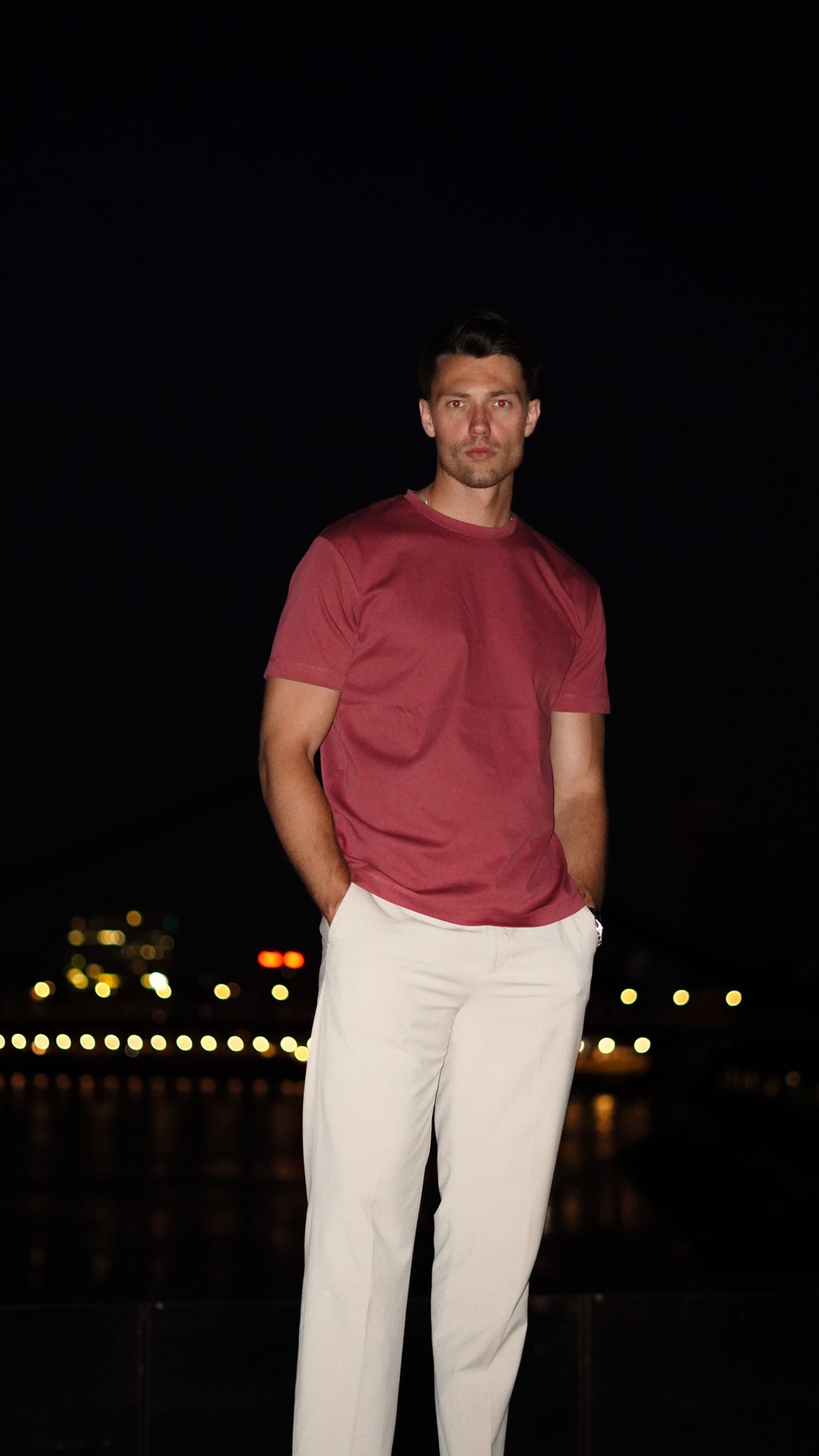 Tijdloos bruin. Onmiskenbare klasse.Zon op je huid, een zachte wind, en een look die altijd klopt. Ash™ is jouw go-to T-shirt voor elke dag waarop je verzorgd, gemakkelijk en stijlvol voor de dag wilt komen. De mooie, warme tint van het gemerceriseerde katoen tilt je outfit naar een hoger niveau — zonder dat het ook voelt alsof je er moeite voor doet.